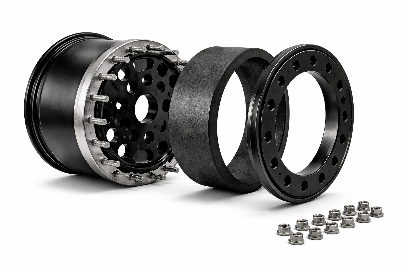 Подвійний бедлок: Конструкція передбачає механічну фіксацію обох країв покришки до обода диска за допомогою болтового з'єднання. Це дозволяє безпечно знижувати тиск у шинах до критичних значень (нижче 0,5 атм) без ризику розбортування
