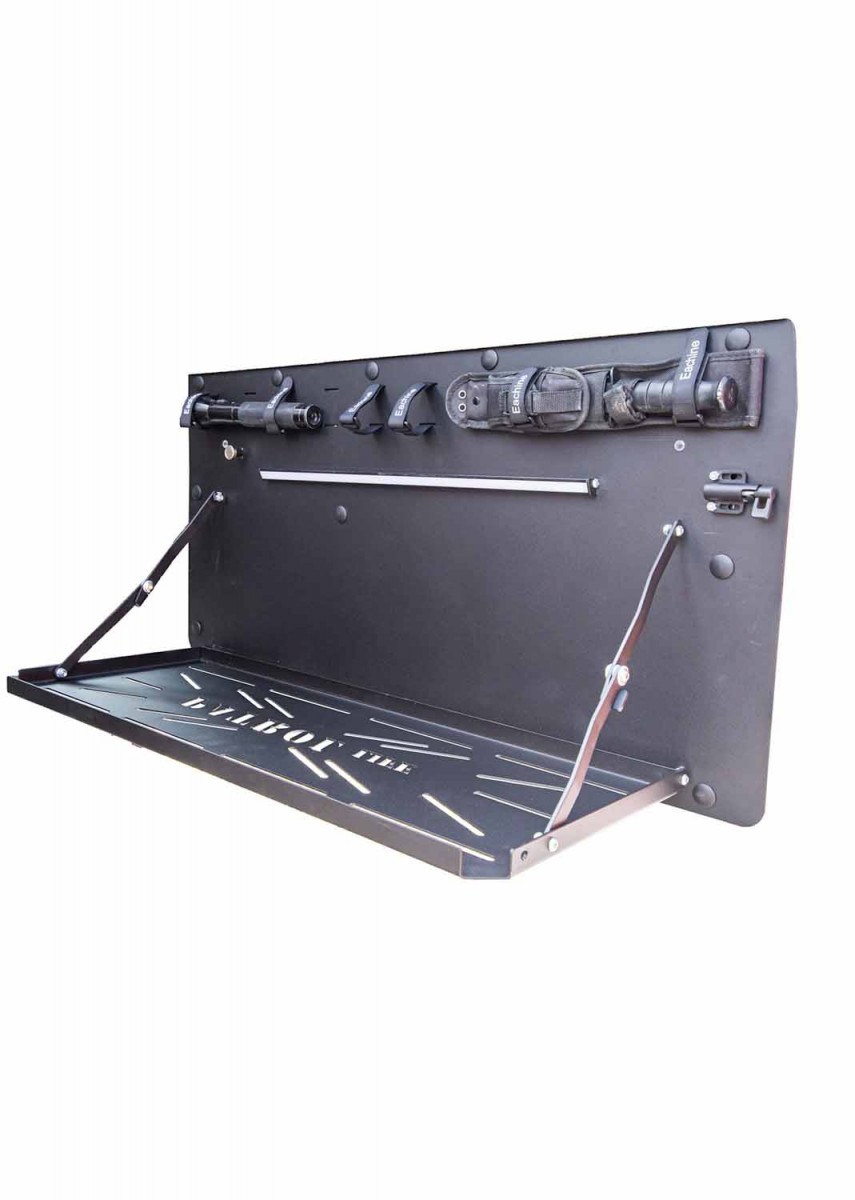 Це зручне та міцне рішення створене спеціально для Nissan Patrol Y61. Монтується на задніх дверях автомобіля та забезпечує надійну, функціональну робочу поверхню — ідеальну для приготування їжі, розміщення спорядження чи виконання польових завдань. Легка, але надзвичайно стійка конструкція витримує екстремальні умови бездоріжжя, а швидкий механізм складання дозволяє підготувати стіл до роботи всього за кілька секунд.