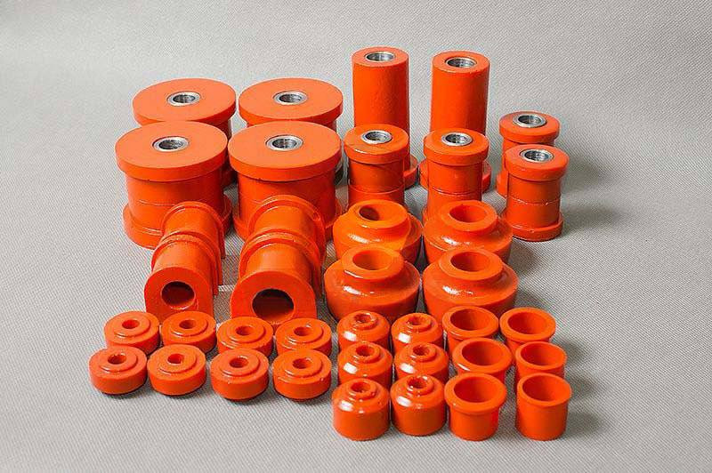 Оранжевые втулки жесткостью 75 ShA или темно-синие (версия для бездорожья) жесткостью 85 ShA